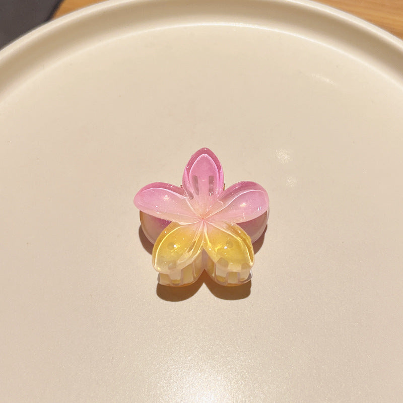 Pince à cheveux clip fleur de Plumeria Rubra aux couleurs sucrées